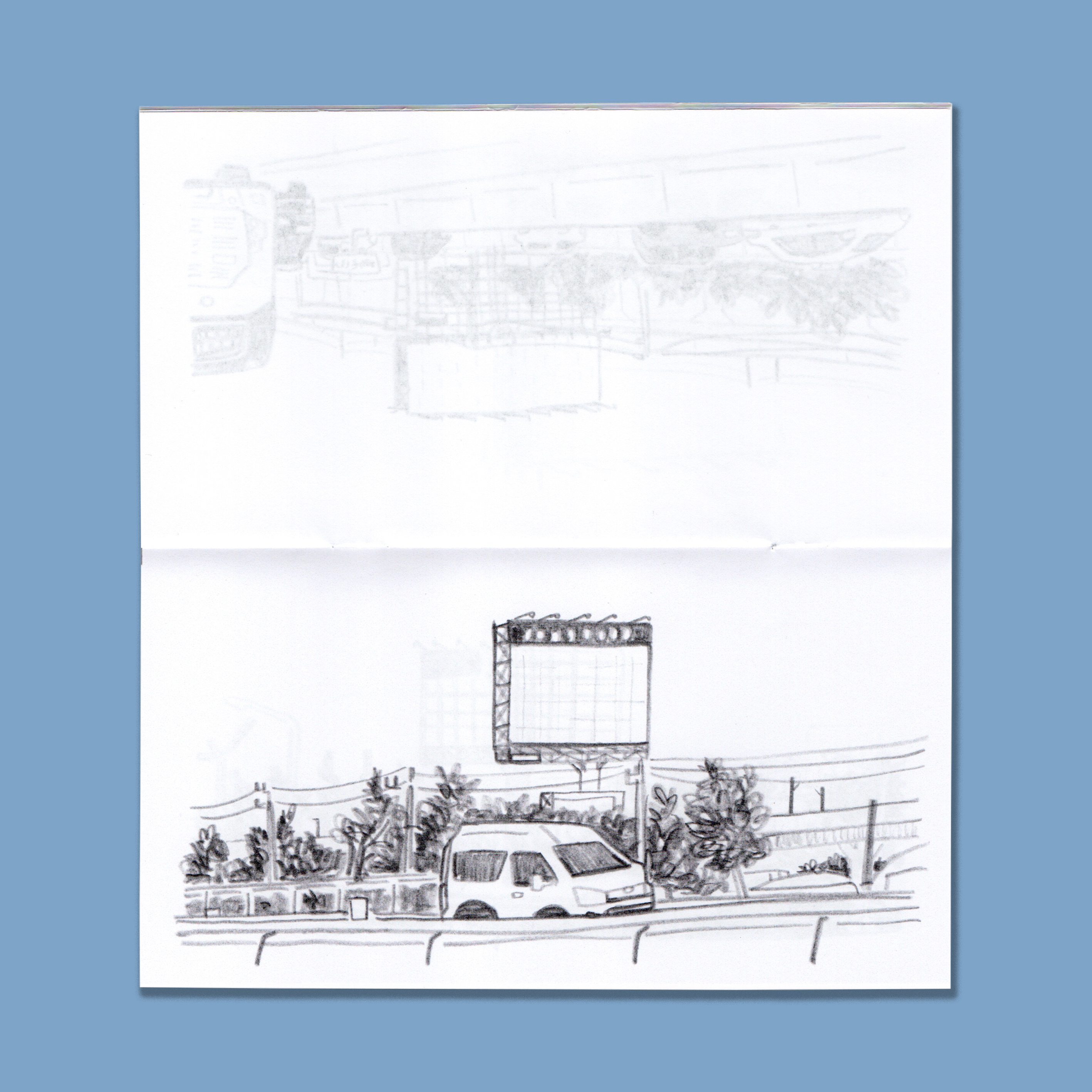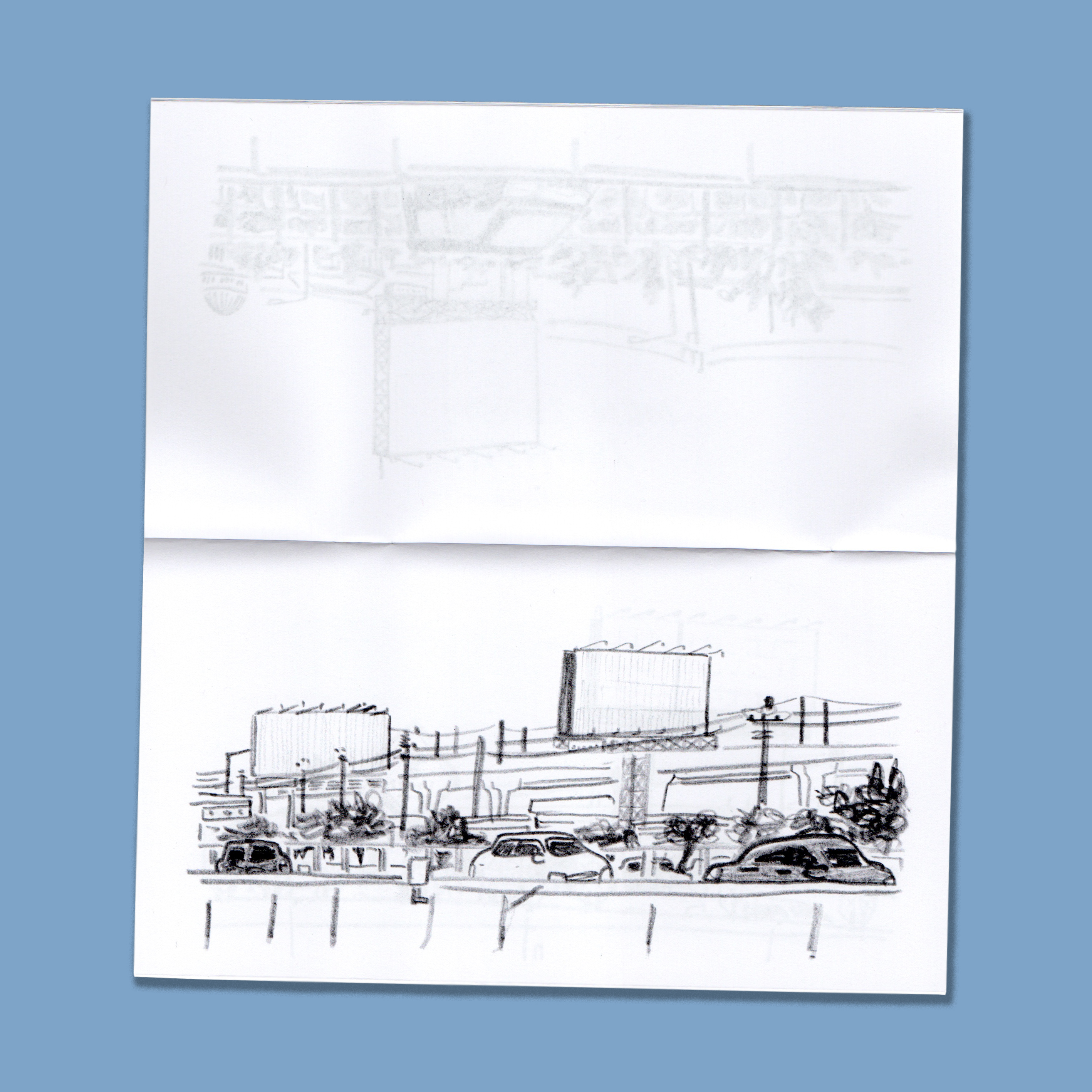 Drawings of higways and blank billboards in Bangkok, Thailand.